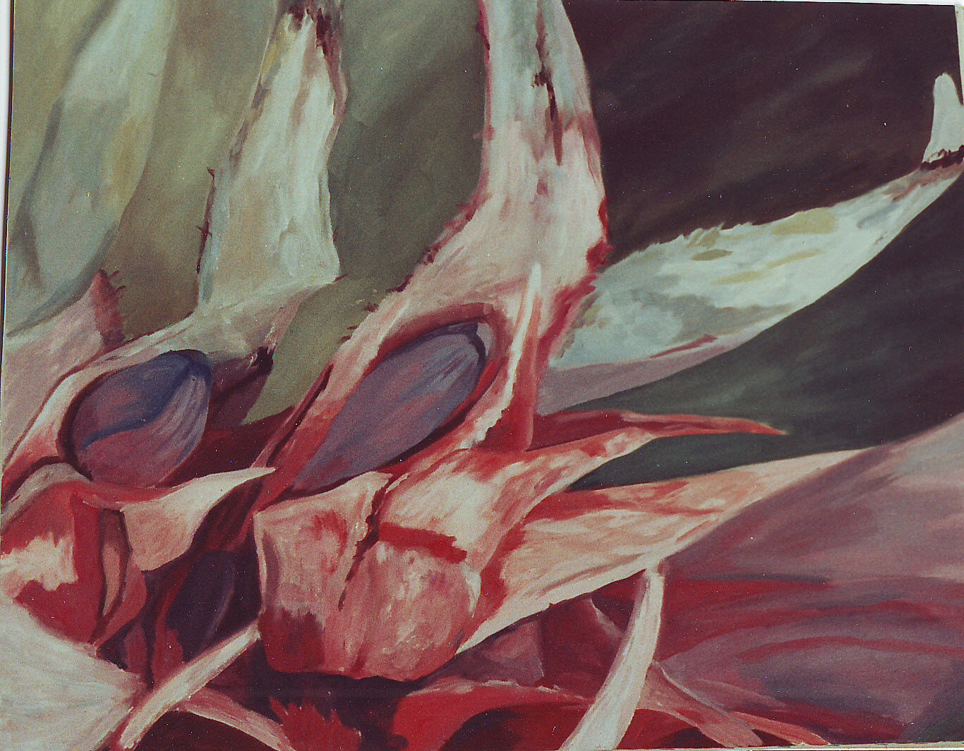 These plants were growing in our garden. They are interesting because the bloom rises up from the center of serrsted leaves and must have water in the "well" inside the leaves instead of the soil around the plant.