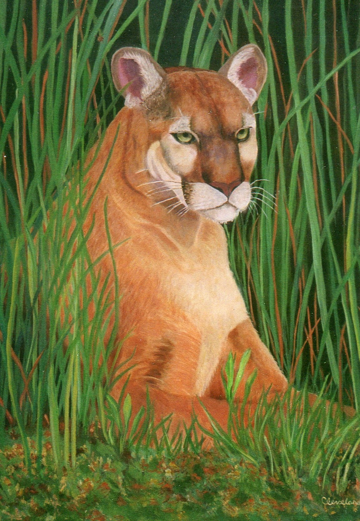 Part of my animal seies, this painting is 30"x40" The Florida panther is in danger because many are killed by cars and their population is constantly being decreased.