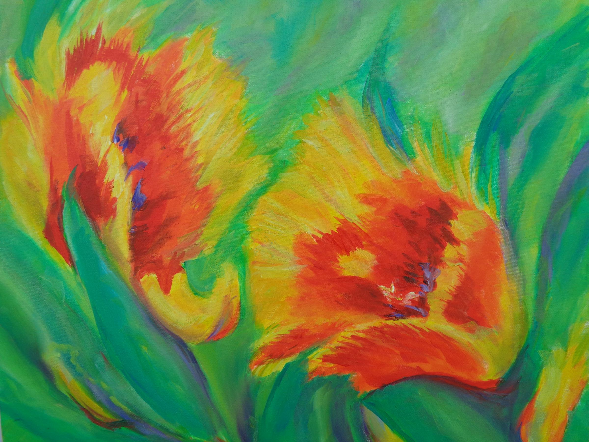 This ia an oil on canvas 18" x 24" of parrot tulips