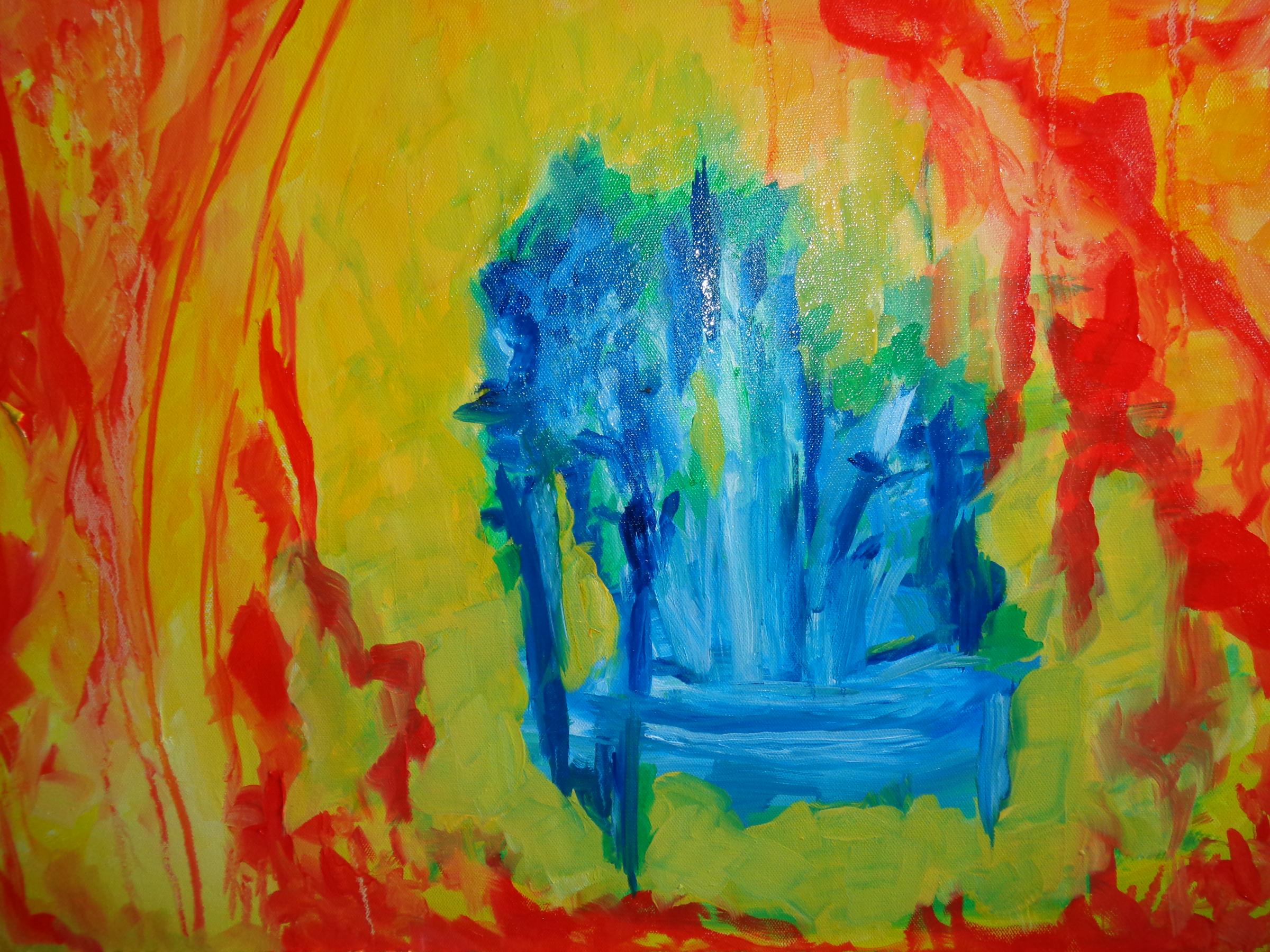 Thinking of a hot day or being in a difficult situation and the cool, calm, peaceful center/ Oil on canvas 22" x 28". The painting depicts from one extreme to another.
