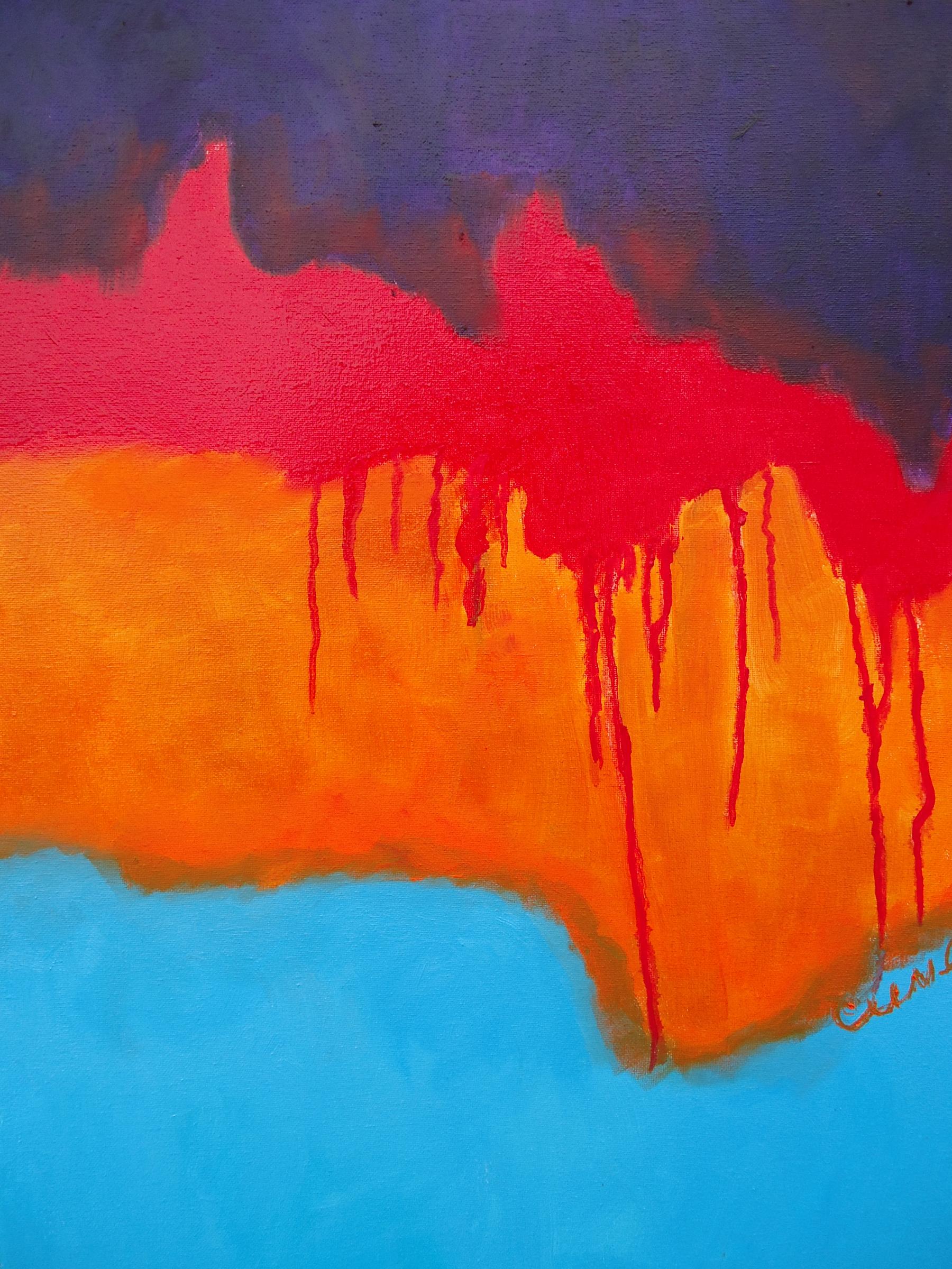 This image  hust "happened"  as I used colors I liked and the red dripped over the edge.