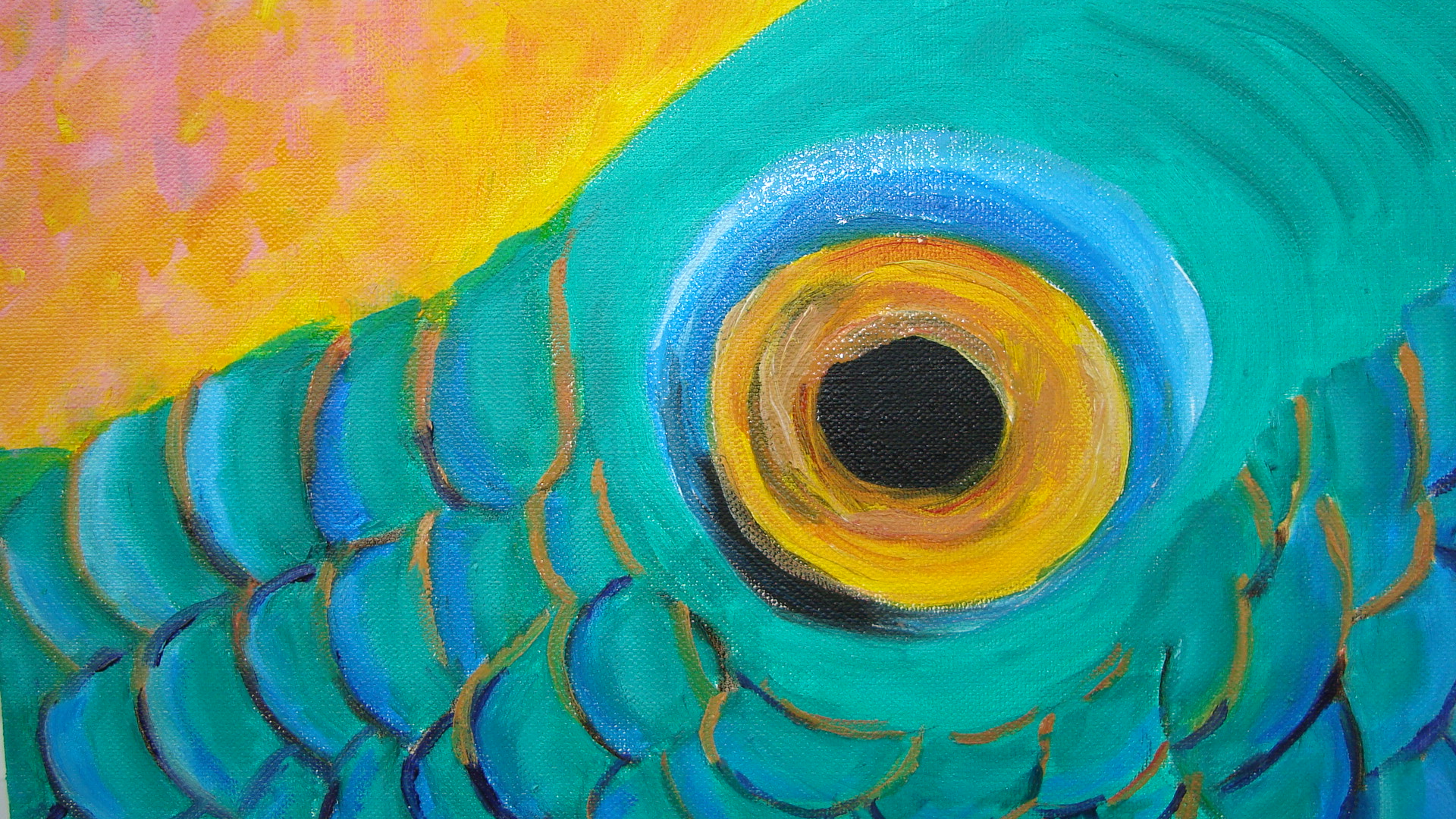 I have taken sections of a parrot fish and combined them to form an abstract painting.. It is "11x14"