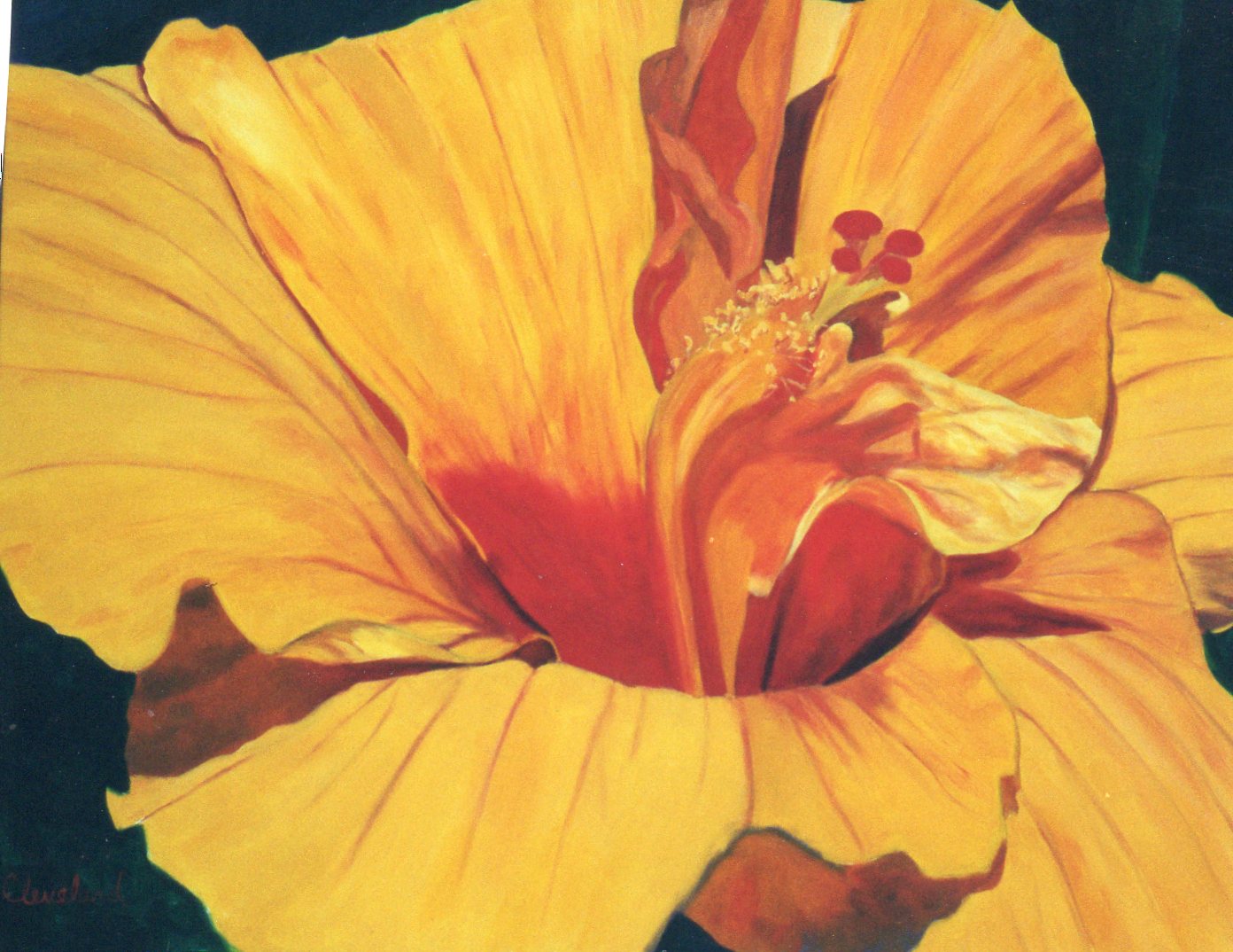 Amber Hibiscus, an oil painting to be included in an upcoming retrospective exhibit of my work at the Cape Coral Library for the month of December. It opens December 1 with an artist's reception Saturday, December 12, 12:30 Pm - 2:30 Pm.