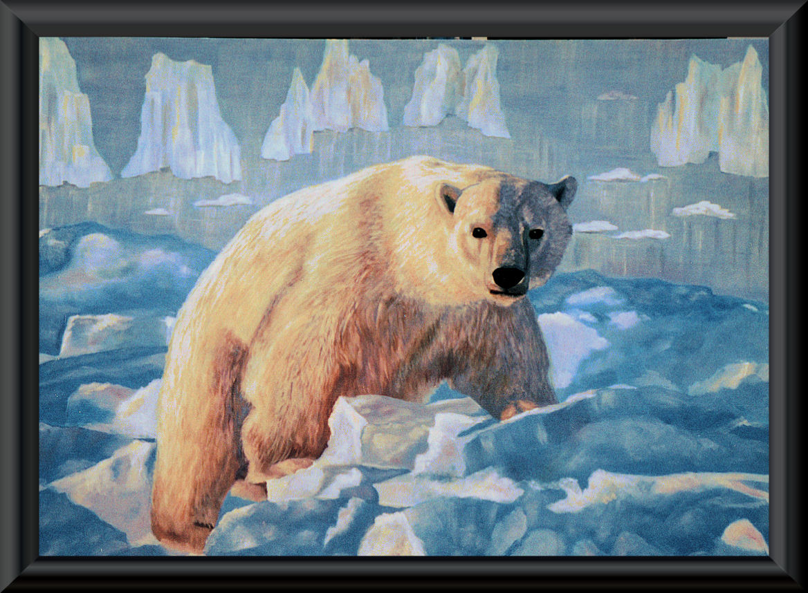 This oil painting ,30'x40" is one of a series of endangered animals. Due to global warming the ice is melting thus endangering the habitat of wildlife in the Arctic. I painted the series of endangered animals with the idea of donating a percentage of the sales to organizations that help save our treasured species.