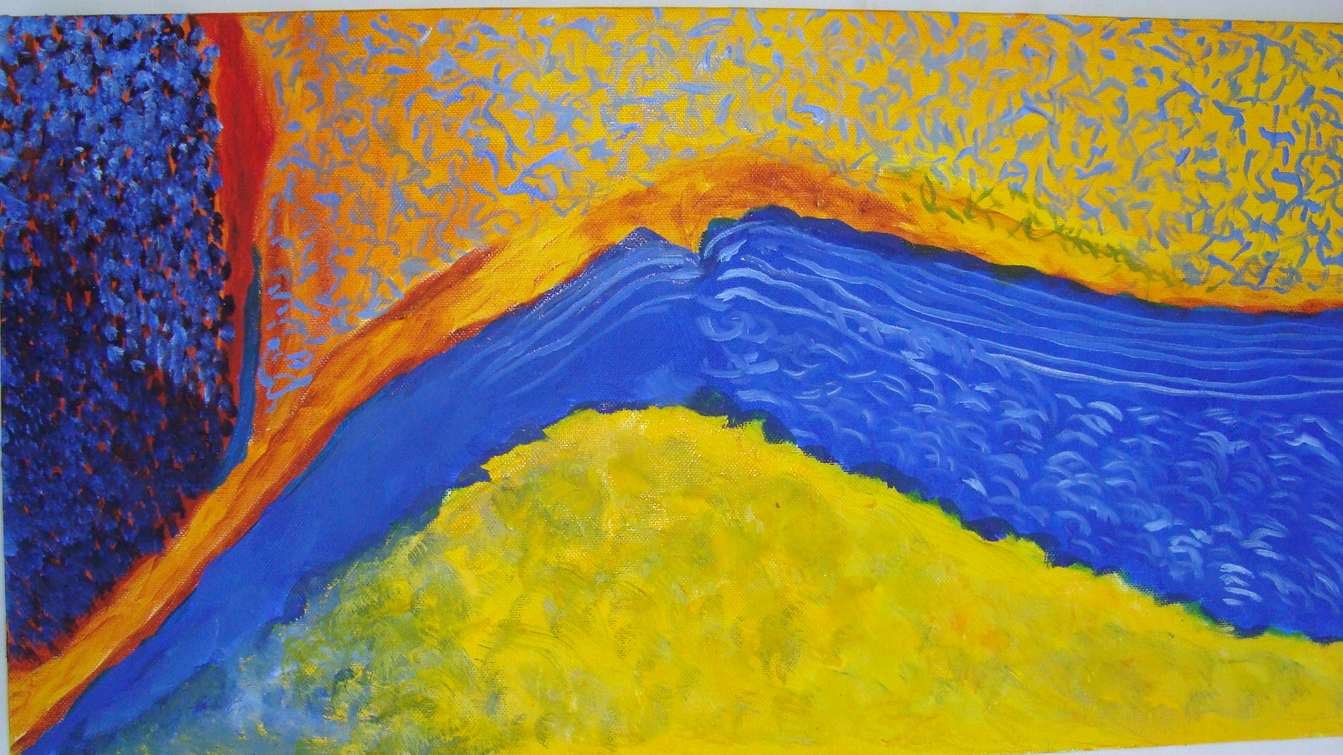 This is a section of the 3 piece painting that is of a reef fish native to the tropical waters.