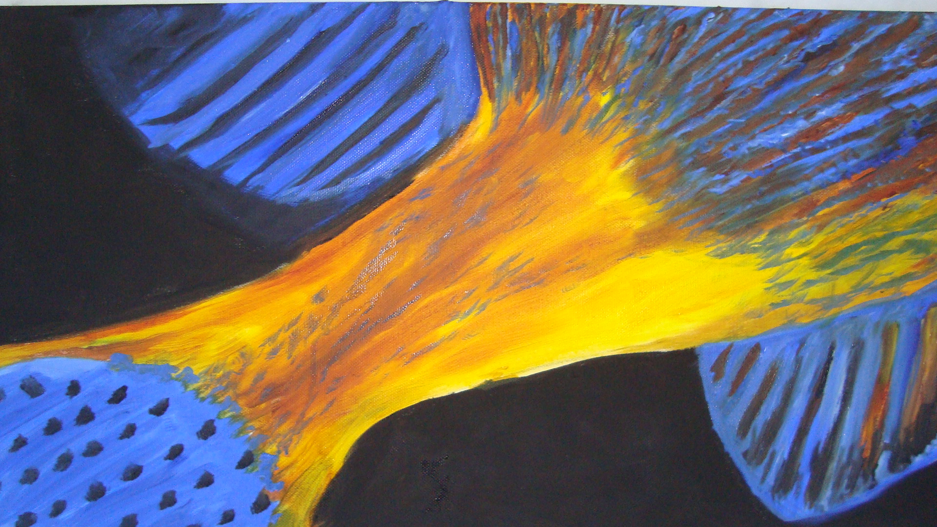 This is the tail of the fish that is the 3rd piece of the triptych to be hung under sections 1 and 2 Each section is somewhat abstract and not meant to show the complete fish
