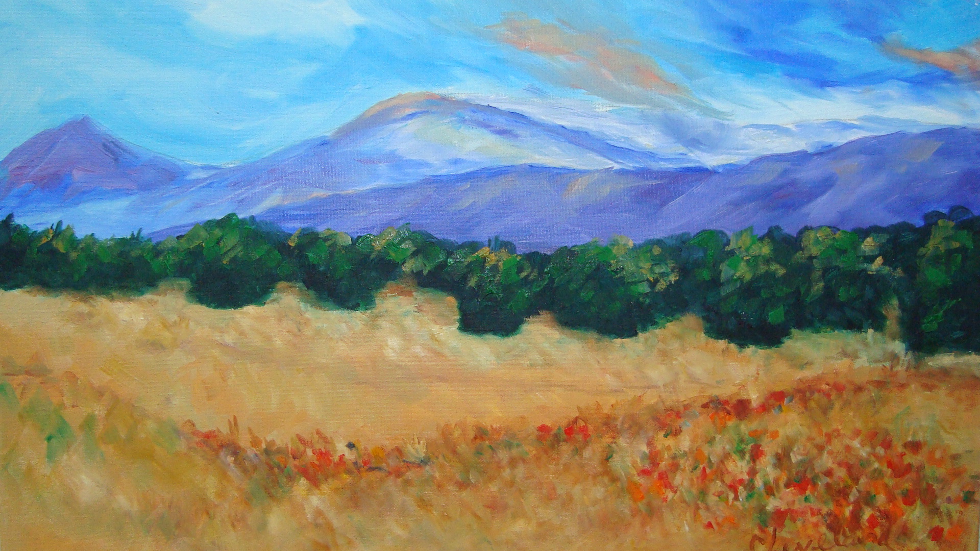 A 24" x 36" oil painting of the same scene as Along Trail Ridge Road but painted in my newer impressionist style.